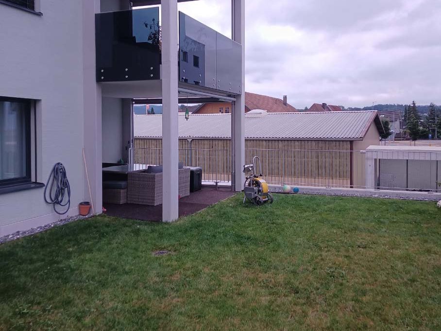 Uns wurde gemeldet, dass ein Dachwasserablauf verstopft sei. Vermutet wurde zuerst ein Spielzeug, welches sich darin befinden sollte.